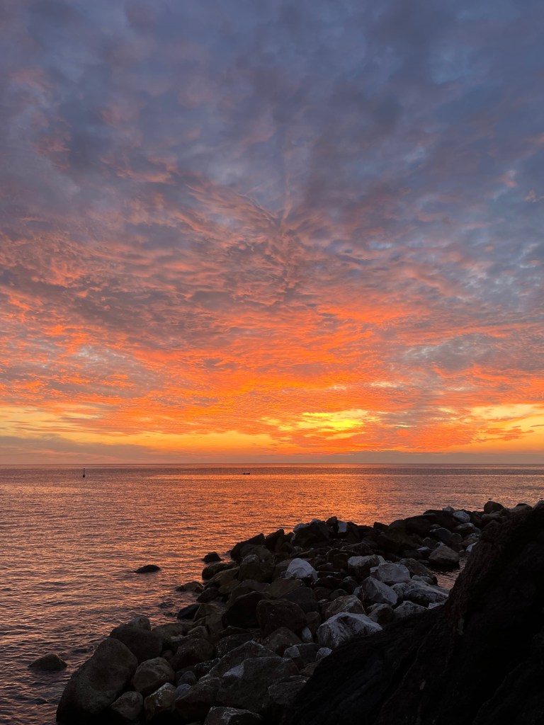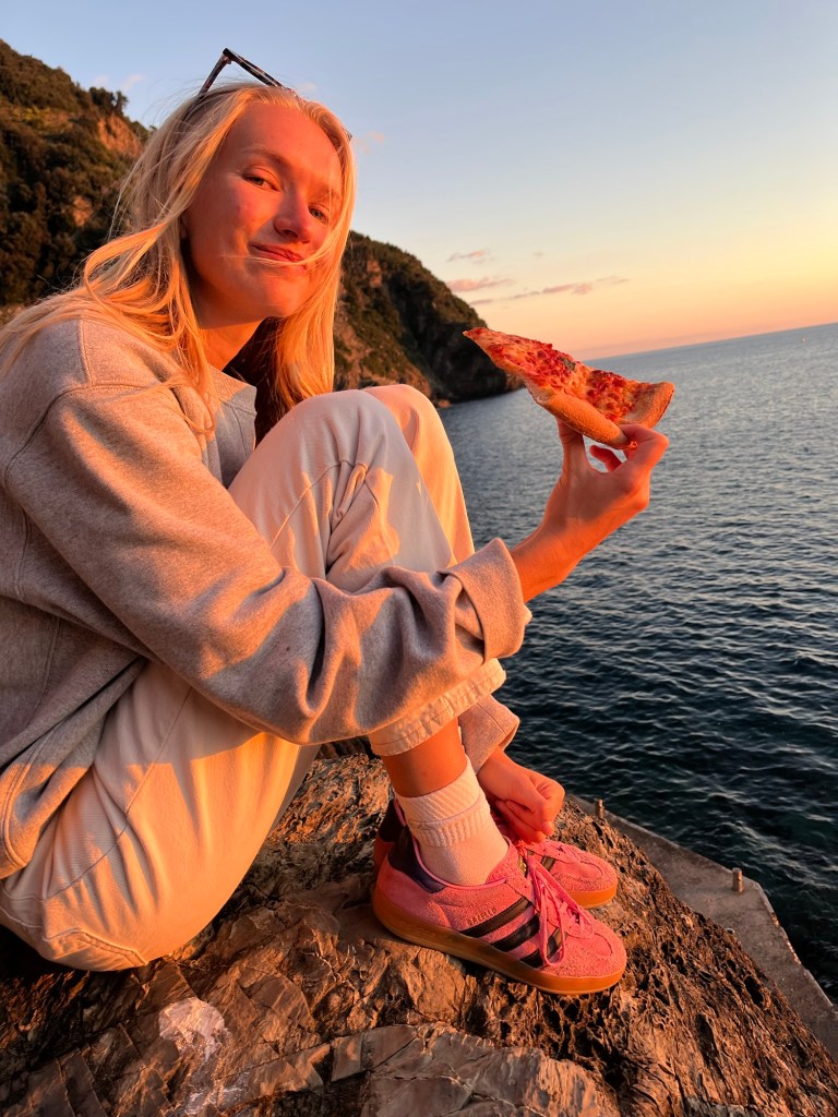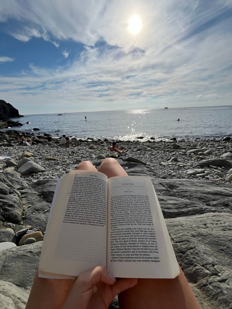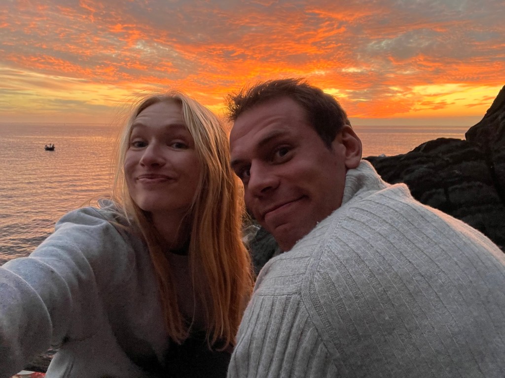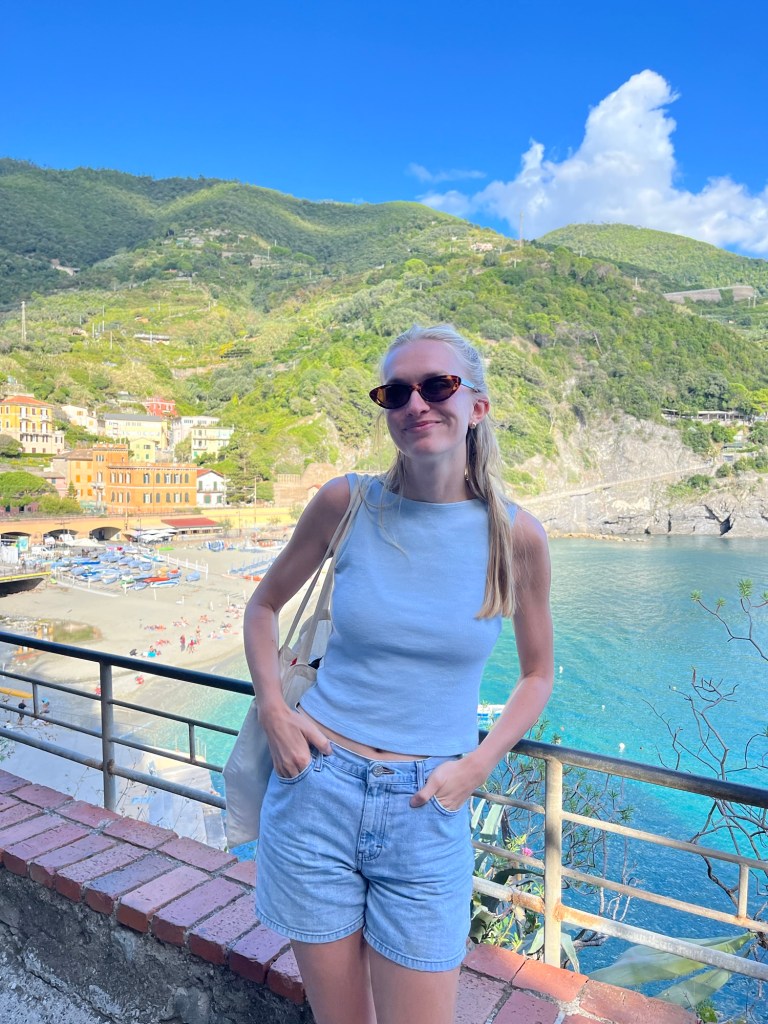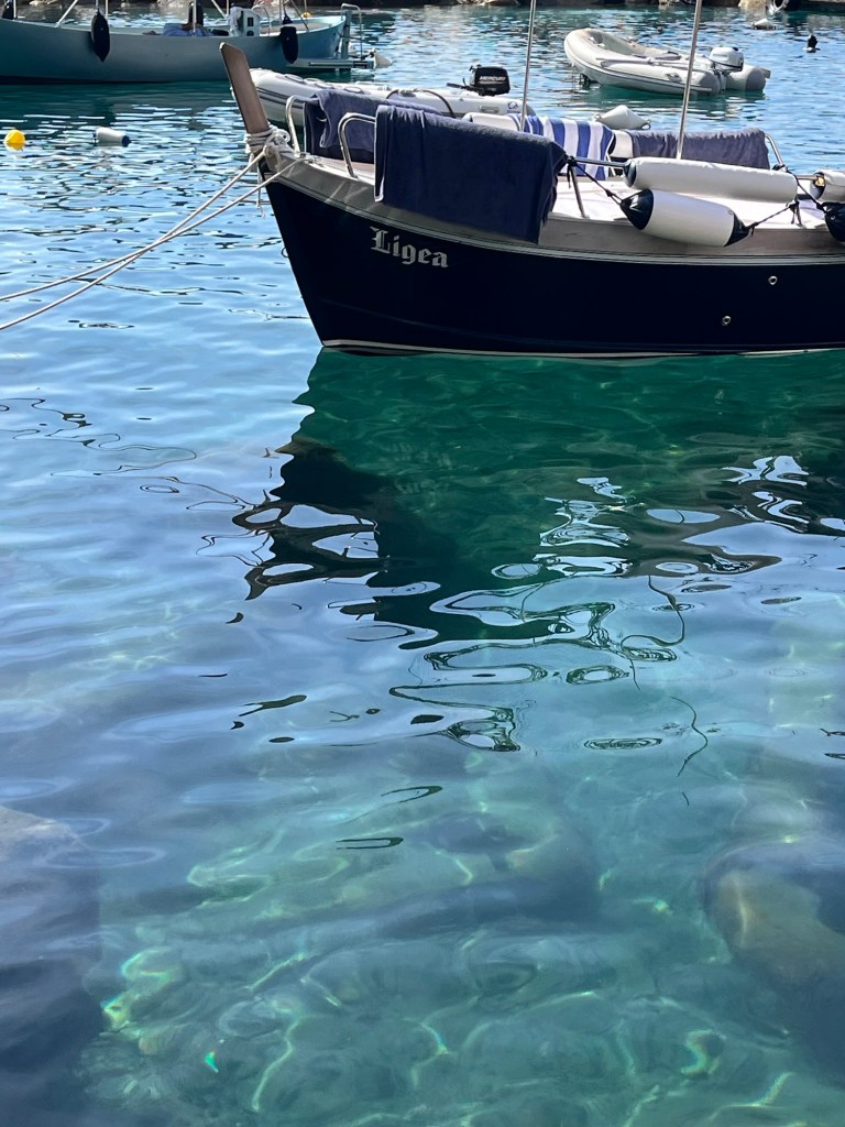 This town was quite a contrast from the others. It wasn’t built up on a cliff, and instead had a long stretch of beach — some pebble, some actual sand. It felt a bit more commercial, but the water was beautiful and easily accessible. We swam, wandered through the streets, and then headed back. After visiting all five, Ben and I both agreed — we were still quite happy with our home base in Riomaggiore.