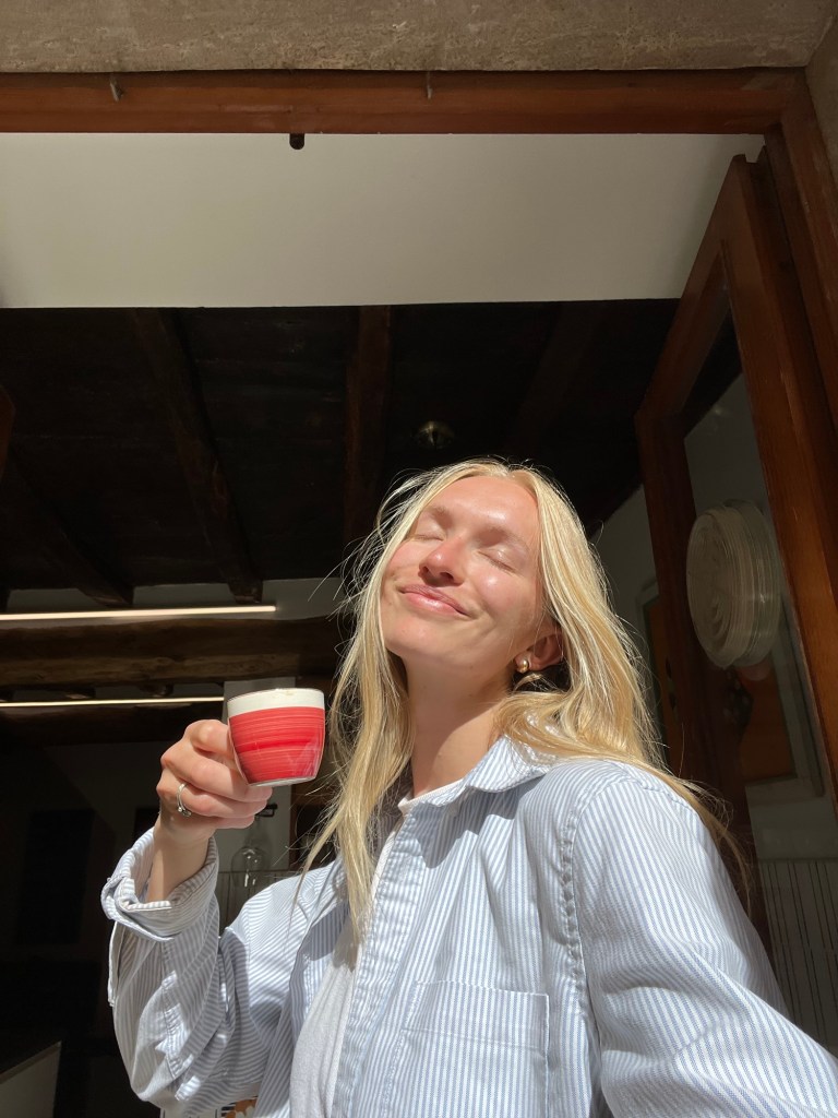 We ate at a little café called Matteo’s, which offered a great breakfast deal: fresh orange juice, cappuccino, and eggs with bacon and toast for €9. Delish! I had read that there were some great swim spots near this town, but from the center of town we weren’t sure how to reach anywhere near the sea. Luckily, on our way out Ben spotted a little staircase at the far end. We went for it — and success! A steep staircase led down to the water, where we turned toward the cliff edge and scrambled over some rocks to our perfect, private cove.
