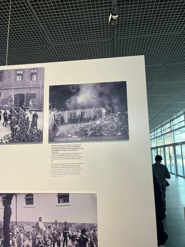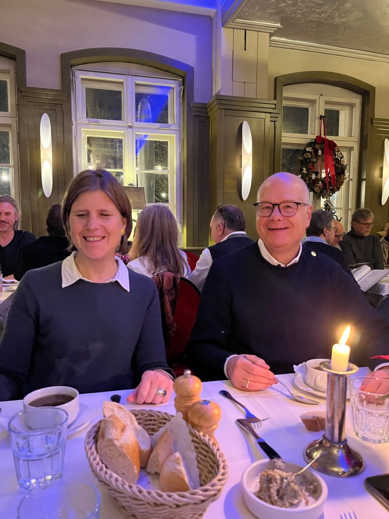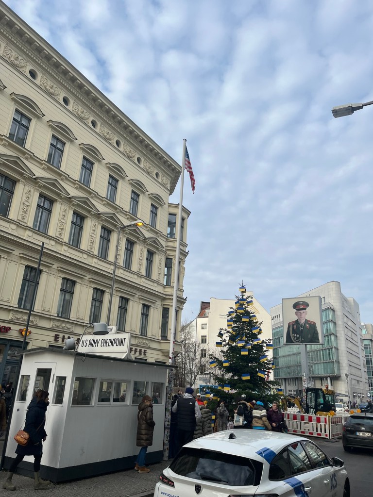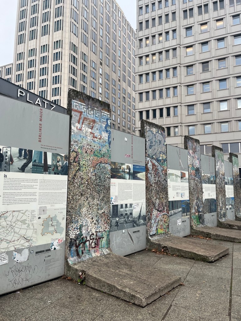 Potsdam Christmas Market Checkpoint Charlie A picture is worth a thousand words. Just amazing that some of these photographs exist. We visited the Topography of Terror Museum. A section of the wall LOADS of great thrusting Memorial to the burned books. A Christmas Goose dinner !! Trying the Swiss “Raclette” dinner. A legend At the Berlin Philharmonic I may pick up a new hobby…