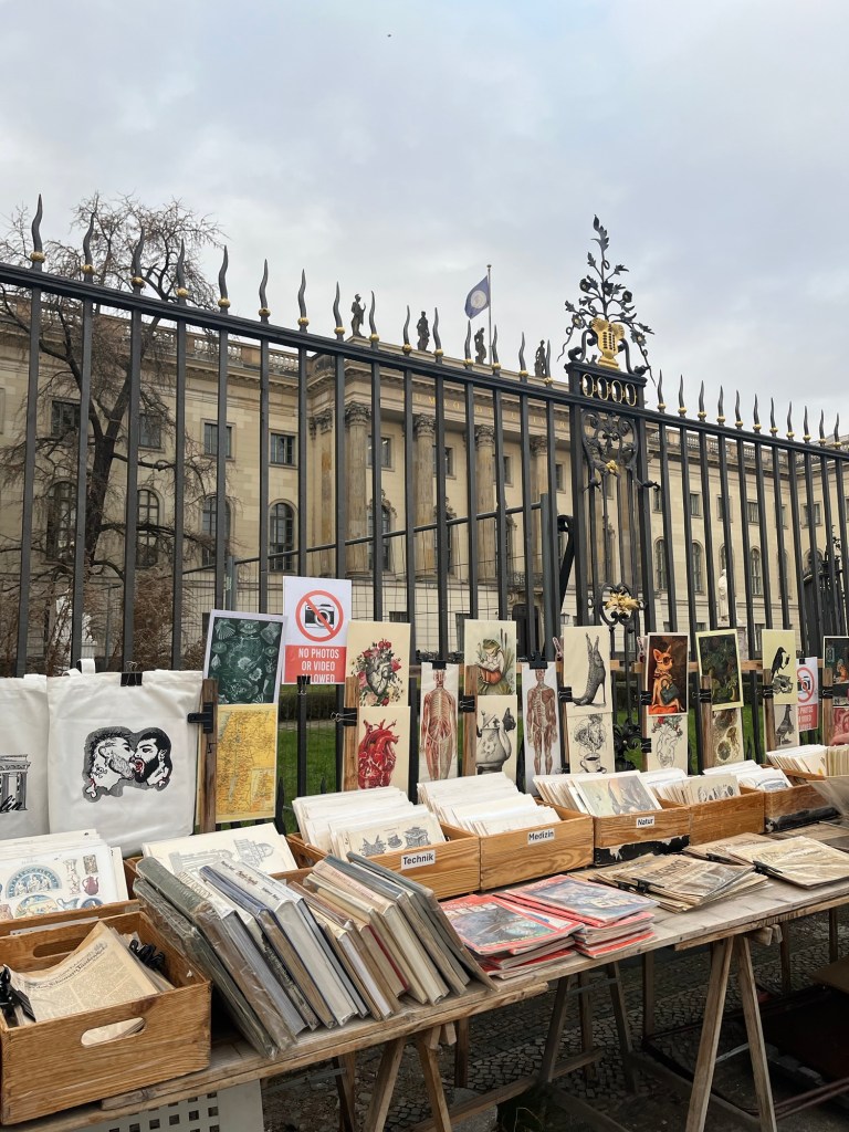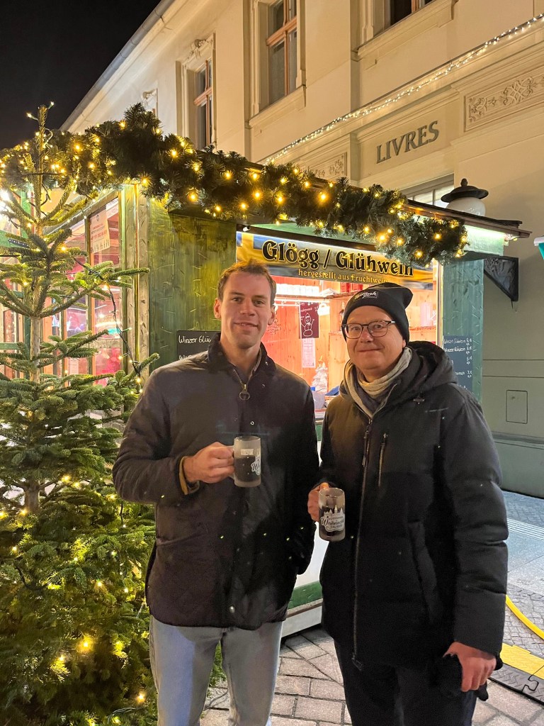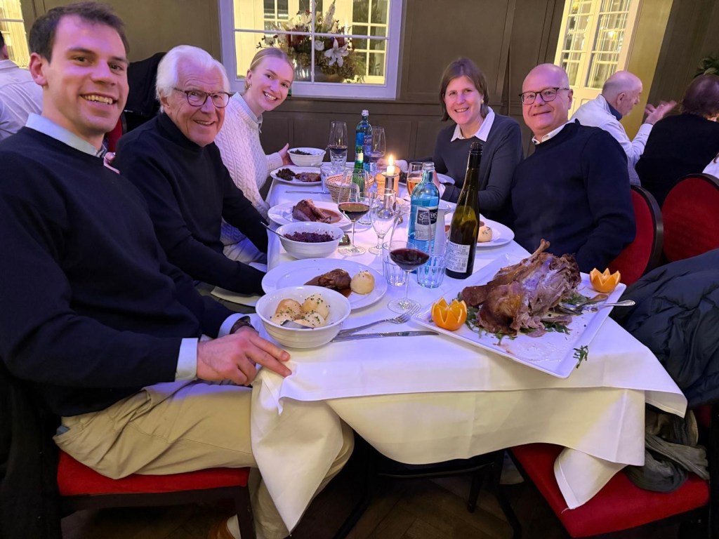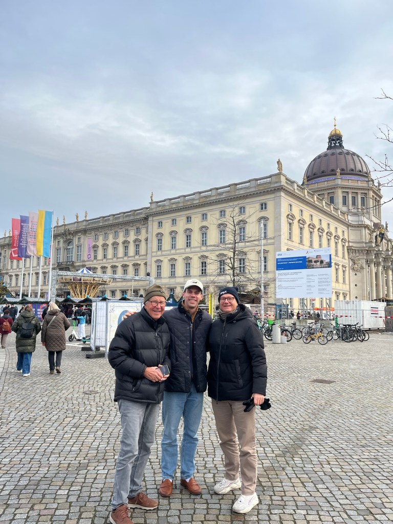 Potsdam Christmas Market Checkpoint Charlie A picture is worth a thousand words. Just amazing that some of these photographs exist. We visited the Topography of Terror Museum. A section of the wall LOADS of great thrusting Memorial to the burned books. A Christmas Goose dinner !! Trying the Swiss “Raclette” dinner. A legend At the Berlin Philharmonic I may pick up a new hobby…